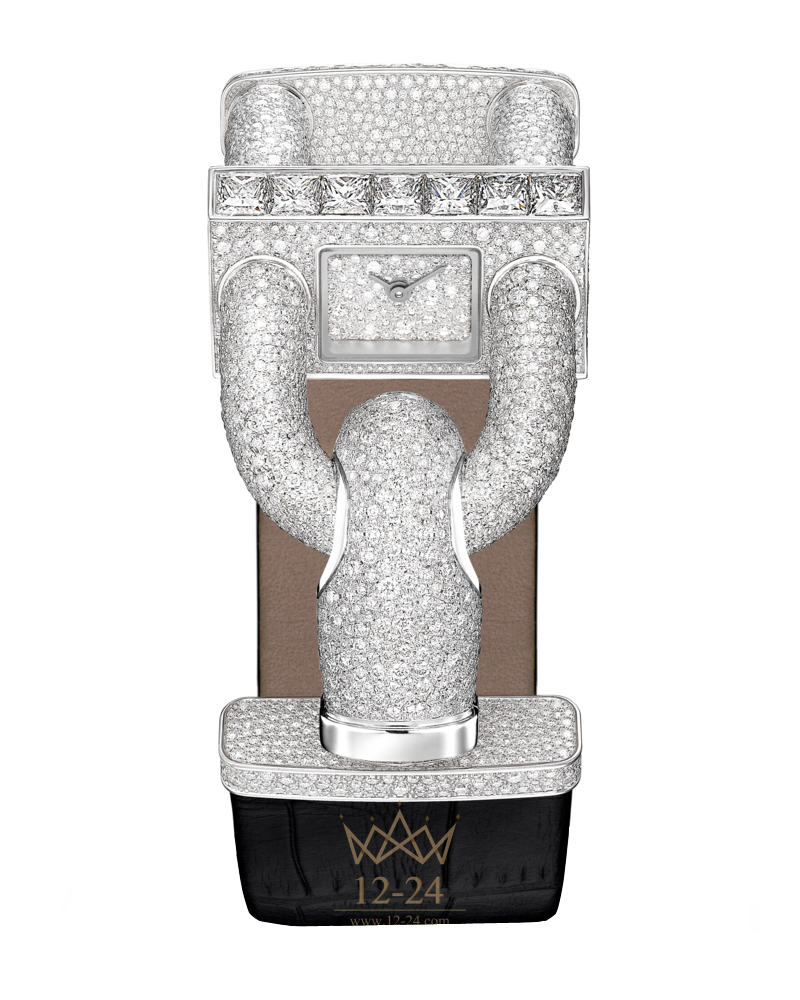 Циферблат из белого золота, бриллианты круглой огранки, «снежная» закрепка; суммарное количество бриллиантов - 1858 весом около 10,71 карат
