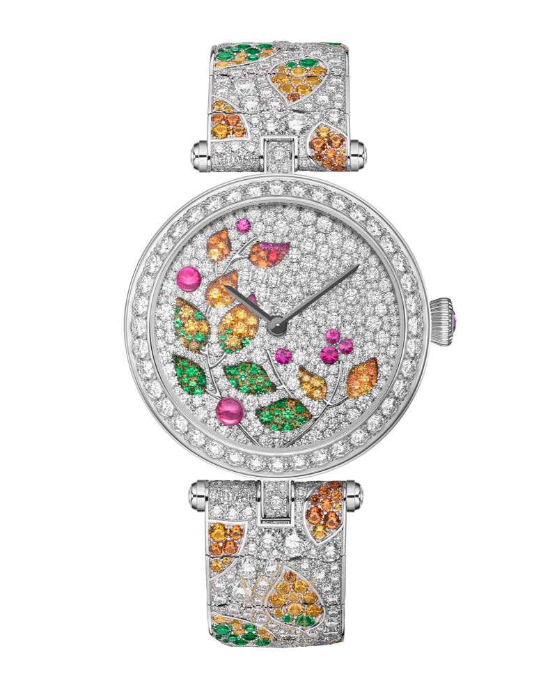 Из белого золота с желтыми сапфирами, цаворитами, гранатами-спессартитами и бриллиантами круглой огранки