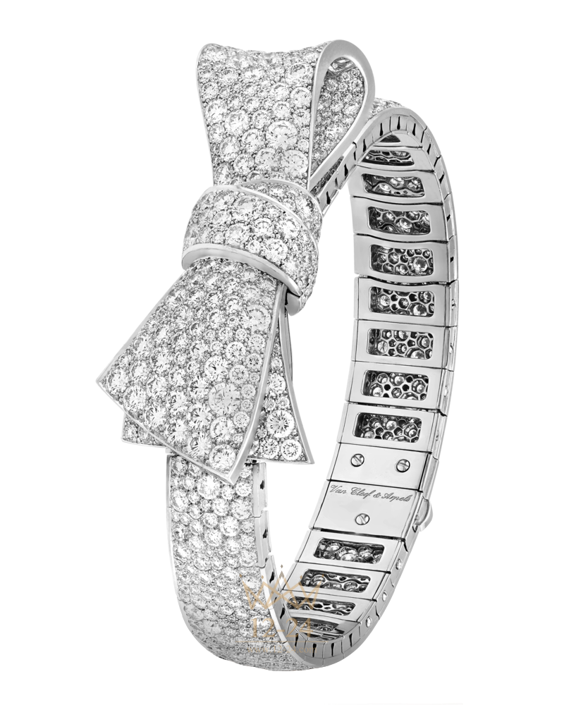 Браслет с бантом из белого золота с бриллиантами круглой огранки