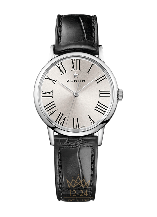 Ремешок из черной кожи аллигатора с подкладкой из каучука. Классическая застежка из стали.