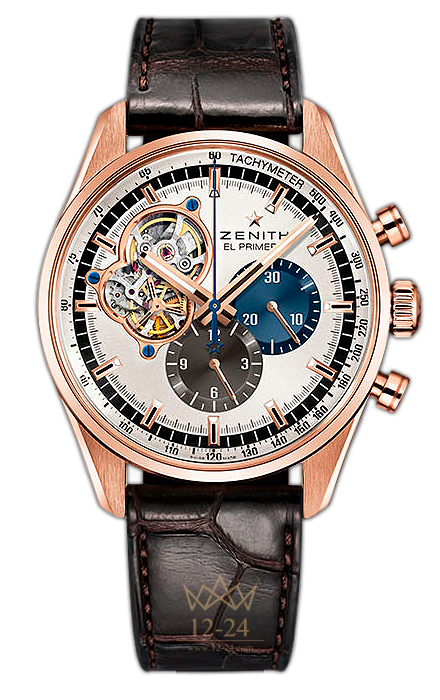 Характерные цвета знаменитой исторической модели El Primero 1969 года. Окошко в циферблате открывает взору механическое «сердце» часов – знаменитый калибр El Primero Анкер и анкерное колесо из кремния.