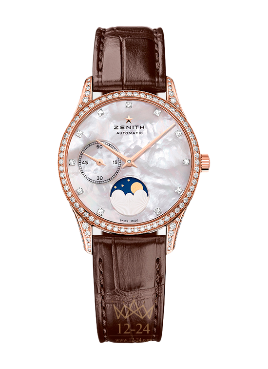 Ремешок из коричневой кожи аллигатора с подкладкой из каучука. Классическая застежка из розового золота.