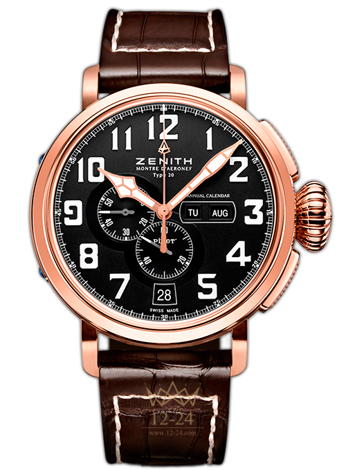 Легендарный хронограф El Primero с функцией годового календаря. Завинчивающаяся заводная головка. Задняя крышка с выгравированной надписью «Zenith Flying Instruments».